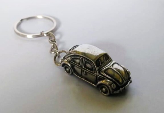 Pewter Volkswagen Beetle Key Tag – Vintage VW Beetle Car Replica Keychain